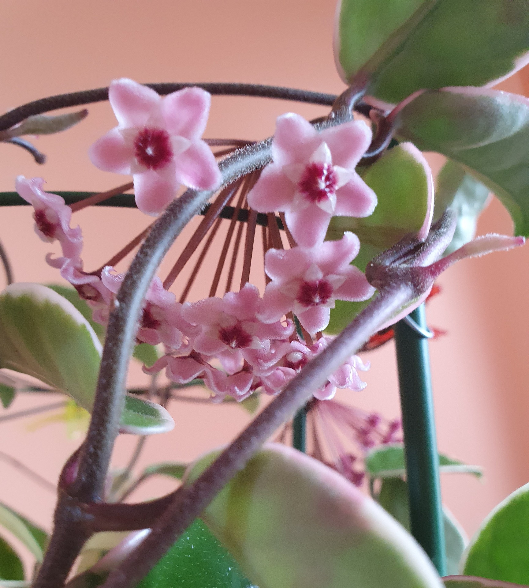 Hoijas sugas Carnosa raiblapu šķirne. Mīl labu gaismu, tad jaunās lapiņas plauks sārtas, bet nobriestot iegūs balti krēmīgus laukumus, lapas ir nelielas, diezgan biezas un nedaudz ieliektas. Ļoti dekoratīva hoija. Viegli uzzied ar skaistām rozā ziedkopām, kas saglabājas 2-3 nedēļas un ziedi ir ļoti smaržīgi. Viegli kopjama hoija, var augt dažādos substrātos un sasniegt iespaidīgu izmēru. Nemīl pārlaistīšanu, laistīt, kad substrāts virspusē izžuvis.