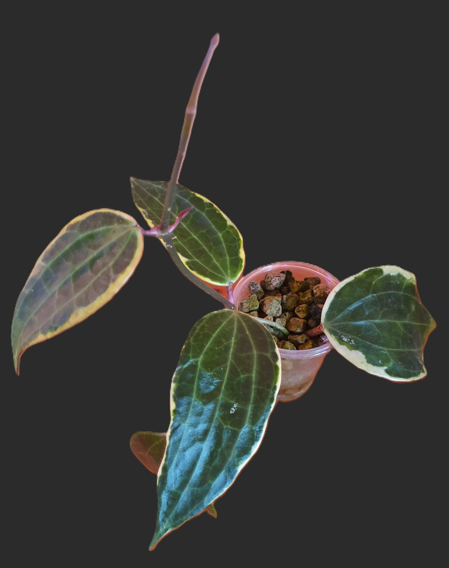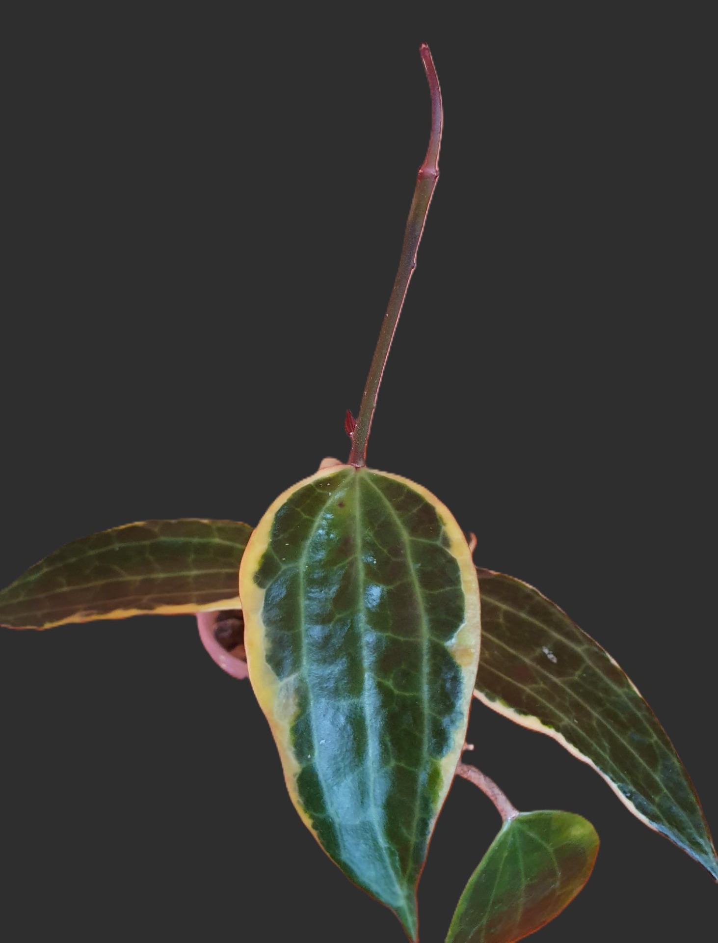 Spēcīgi augoša Latifolia sugas šķirne ar krāsainām (lapas ārmala), cietām, labi dzīslotām lapām, kas labā apgaismojumā iegūst skaistu sarkanu apmali un pati lapa paliek ar tādu kā sudraboti bālu pārklājumu, izskatās ārkārtīgi skaisti. Man vēl nav ziedējusi. Labāk audzēt pēc iespējas gaisīgākā substrātā, kurā neuzkrājas lieks ūdens, nedaudz sevi pie šīs hoijas ir jāpieradina. Spraudenis ir apsakņots pumekā un uzsācis augšanu. Smagākā substrātā būs ļoti uzmanīgi jālaista, jo necieš pārlaistīšanu, tad ātri vien nomet saknes, hoijai jādod izjust sausuma periodus. Labos augšanos apstākļos ļoti skaista un liela hoija.