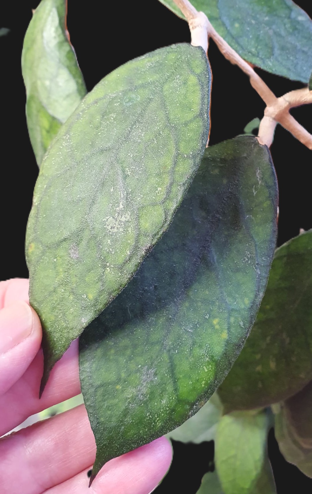 Ļoti skaistas, cietas, pat raupjas lapas, apakšpusē viegli pūkainas, līdz ar to ļoti taktilas. Uzzied viegli, ziediņi atgādina finlaysonii sugas hoiju ziedus, arī ar jauku, maigu smaržu. Viegli kopjama, var augt dažādos substrātos. Nedaudz mitrumprasīgāka kā finlaysonii sugas hoijas.